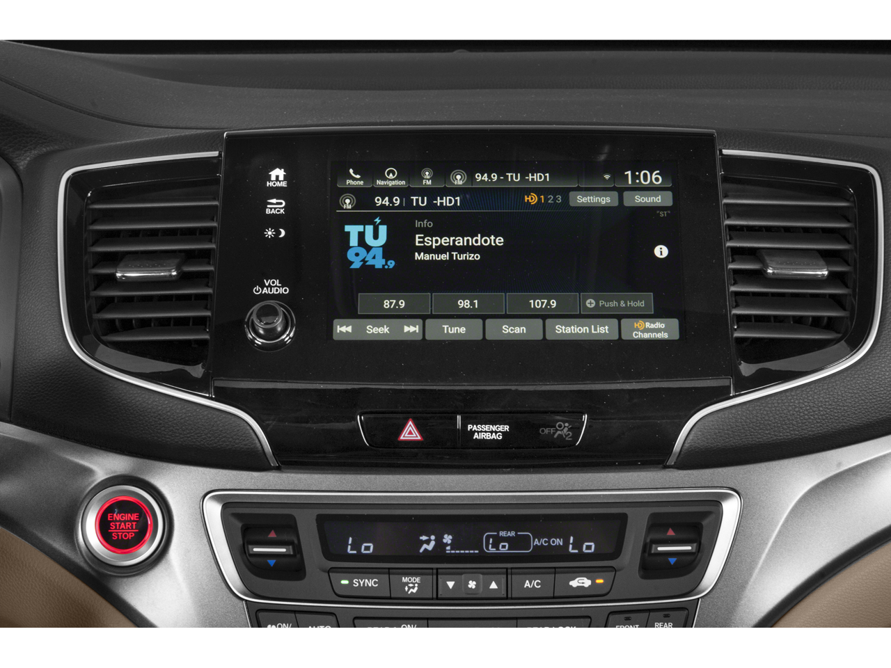 - Radio: AM/FM Audio System -inc: 215-watts, 7 speakers including subwoofer, Bluetooth® HandsFreeLink, Bluetooth® streaming audio, MP3/auxiliary input jack, Radio Data System (RDS), Speed-Sensitive Volume Compensation (SVC), USB smartphone/USB audio interface w/2.5-amp port in front console, USB charging port w/2.5-amp port in center console and 2nd-row (2 ports), 8" display audio w/high-resolution electrostatic touch-screen and customizable feature settings, HondaLink, CabinControl remote compatibility, Apple CarPlay integration, Android Auto integration, SMS text message function, SiriusXM radio and HD Radio